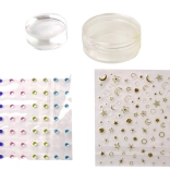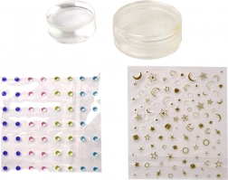 Bohatá výbava podporuje jemnú motoriku, kreativitu a vlastný štýl. Vďaka razítkovacej doštičke, šablónam, nálepkám a kamienkom vzniknú originálne dizajny behom chvíľky – ľahko a bez neporiadku.
