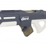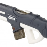 Plnenie je mimoriadne jednoduché: môžete ponoriť hlaveň do vody alebo použiť horný plniaci otvor. Pištoľ je napájaná akumulátorom 7,4 V (súčasť balenia) a dodáva sa s originálnou nabíjačkou pre rýchle dobitie. Kvalitný plast zaručuje odolnosť a dlhú životnosť.