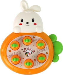Animované obrázky králika dodávajú hravú náladu. Súprava obsahuje špeciálne pole, na ktorom je umiestnených šesť mrkiev. Mrkvy vyskakujú z náhodných otvorov na poli, čo robí hru napínavejšou a nepredvídateľnejšou.
