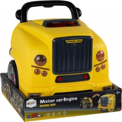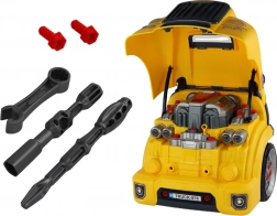 Objavte šikovnú hračku, ktorá rozvíja jemnú motoriku, logické myslenie a kreativitu. Žltý autobus funguje ako mobilná dielňa: deti pomocou priložených nástrojov bezpečne skúšajú rozoberanie a montáž častí vozidla, skúmajú „motor“ pod otváracou kapotou a učia sa princípom mechaniky hravou formou.