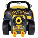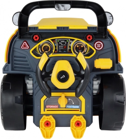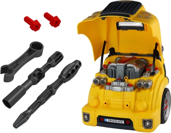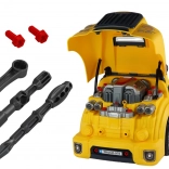 Otváracia kapota a odskrutkovateľné kolesá umožnia deťom nahliadnuť do útrob vozidla a trénovať montáž aj demontáž s priloženými nástrojmi.
