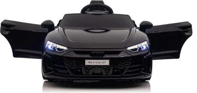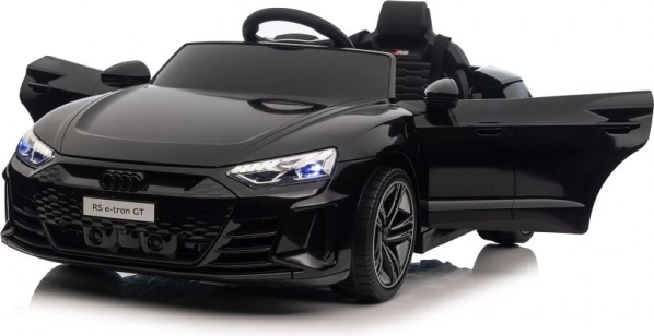 Elektrické autíčko Audi RS e-tron GT v čiernej farbe je dokonalou replikou skutočného športového vozidla. Je vyrobené z plastu s realistickými detailami ako sú otváracie dvere a osvetlené LED svetlomety, ktoré napodobňujú skutočný automobilový zážitok.