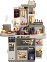 Digestor s tlačidlom on/off a hudobnou funkciou prehráva melódie a rozsvieti svetlá, čo dodáva hre interaktivitu. Kohútik s uzavretým okruhom vypúšťa vodu pomocou pumpičky – bez neporiadku a plne pod kontrolou. Sada obsahuje 74 praktických doplnkov (ovocie, zelenina, hrnce, šálky, taniere, príbory, sušienky, čokoládky, kanvička, tabuľka na kriedu, varič na vajcia, kečup, horčica, korenie, mlieko a i.), spolu 88 prvkov.