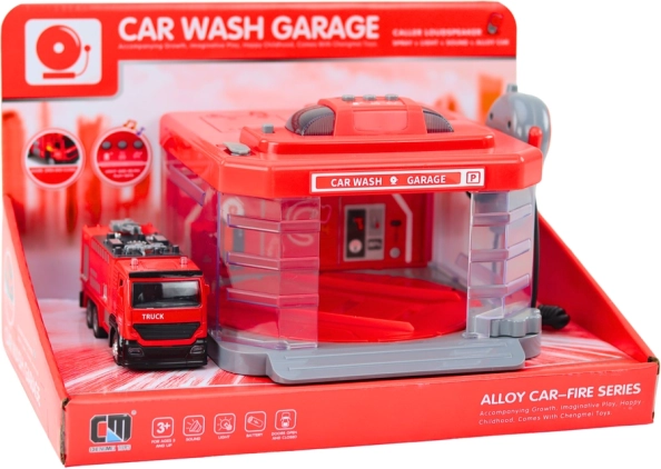 Táto detailne spracovaná hasičská umývačka s garážou umožňuje deťom simulovať skutočné zásahy a starostlivosť o hasičské vozidlo. Vďaka centrálnej otočnej plošine možno vozidlo počas hry jednoducho „umyť“, zatiaľ čo svetlá a zvuky dodávajú akcii napätie a realistickosť. Po naliatí vody do hornej nádržky sa aktivuje efekt striekajúcej vody, ktorý umocní autentický zážitok.