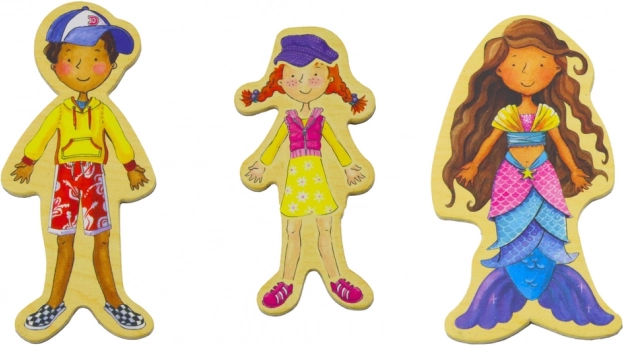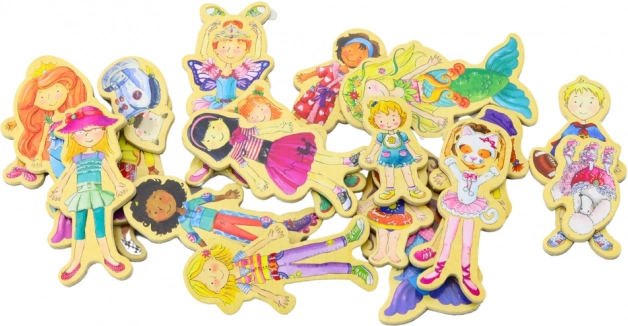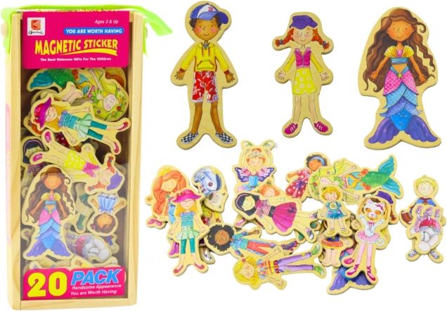 Drevené magnetické figúrky sú výnimočná sada, ktorá obsahuje 20 rôznych postavičiek vo farebných kostýmoch. Každá figúrka má svoju jedinečnú identitu a dizajn, čo deťom umožňuje hravo rozvíjať svoje rozprávačské schopnosti.