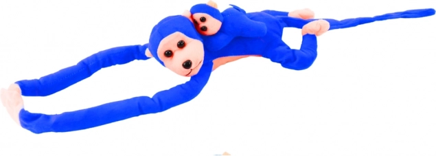 Roztomilá plyšová opička s mláďatkom v sýtom modrom odtieni je ideálny spoločník pre deti. Má mäkké hebké prevedenie, dlhé končatiny s páskami na suchý zips na pripevnenie k rúčke či postieľke a veľkosť 70 cm, ktorá láka k mojkaniu aj hraniu.
