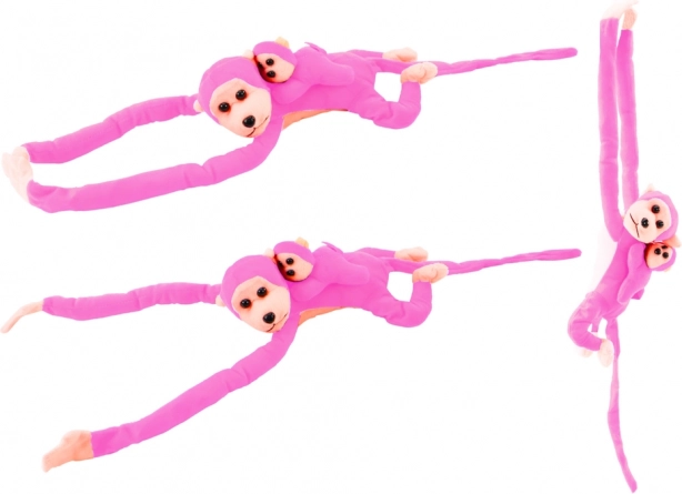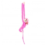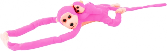Roztomilá ružová plyšová opička s mláďaťom s dĺžkou 70 cm je mäkučký kamarát pre deti. Vďaka dlhým končatinám s pripínaním na suchý zips ju ľahko zavesíte na postieľku či batoh. Hebký materiál, pohodlné mojkanie a certifikácie CE a EN71 z nej robia bezpečnú a zábavnú hračku pre deti od 3 rokov.