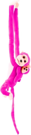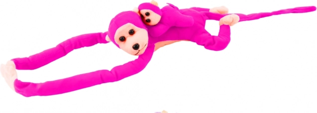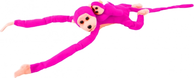 Opička v jasnej ružovej farbe s mláďatkom na chrbte je nielen vizuálne lákavá, ale aj skvelým doplnkom do detskej izby či ako darček.