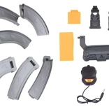 Set obsahuje 6 vozov pripravených do akcie, ktoré možno ukladať do základne. Základňu možno zložiť ako kufrík a ľahko prenášať vďaka pohodlnej rukoväti. Hračku možno napájať tromi batériami 1.5V AA, ktoré nie sú súčasťou balenia.