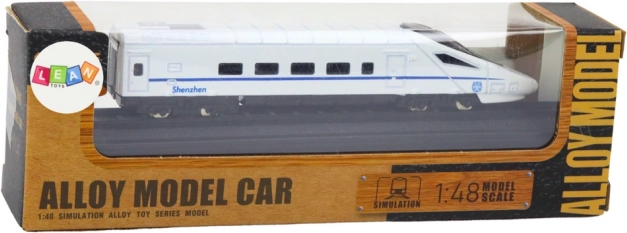 Model vlaku v klasickej bielej farbe priťahuje pozornosť a dodáva eleganciu každej kolekcii. Vytvorený z odolného kovu, zaisťuje dlhú životnosť a realistický vzhľad. Presne proporčne spracovaný v mierke 1:48, model vyzerá ako skutočný vlak v miniatúre. Starostlivo vypracované prvky, ako sú okná, dvere a ďalšie detaily, robia tento model výnimočným. Je to nezameniteľný doplnok každej zbierky modelov vlakov, ktorý sa iste stane jej centrálnym bodom.