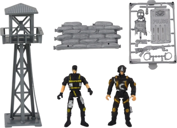 Dve figúrky v taktickom vybavení, strážna veža a závora podporujú nápadité scenáre a tímovú spoluprácu.
