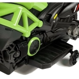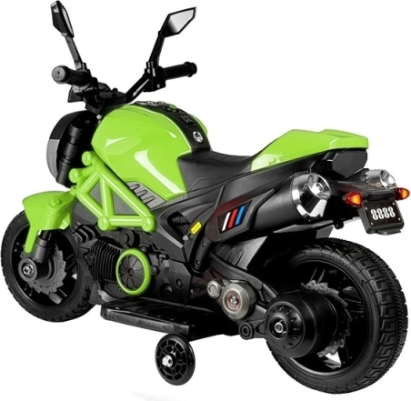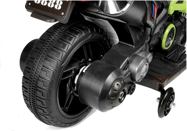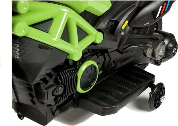 Model GTM1188 sa odlišuje robustným telom bez zbytočných otvorov, takže pôsobí bytelným a istým dojmom aj napriek kompaktným rozmerom. Integrované stúpačky zvyšujú pocit stability, zatiaľ čo skryté bočné kolieska nerušia dizajn a nenápadne podporujú rovnováhu začínajúcich jazdcov. Motorka je doplnená o spätné zrkadlá, dvojitú koncovku výfuku a držiak na detskú poznávaciu značku.