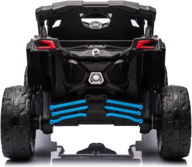 Auto Buggy Can-Am je vybavené prvkami, ktoré napodobňujú skutočné off-road vozidlo, s veľkými kolesami a robustnou konštrukciou.