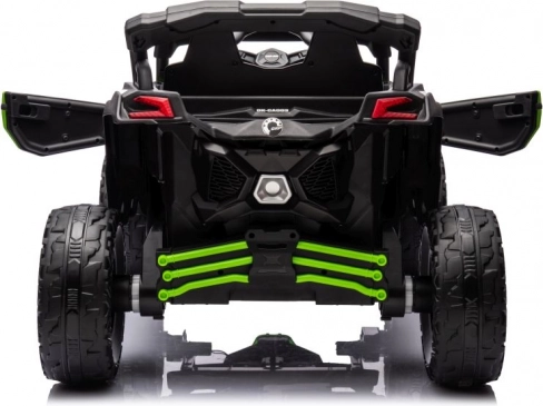 Detský terénny vozík Can-Am ponúka bezpečnú a zábavnú jazdu pre malých dobrodruhov. Robustná konštrukcia a výrazná zeleno-čierna farebná schéma zabezpečujú skvelý zážitok z jazdy ako vonku, tak na ihrisku.