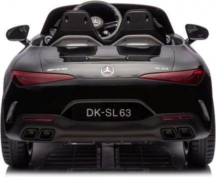Štýlové detské elektrické autíčko MERCEDES AMG SL63 v elegantnej čiernej farbe prináša realistický zážitok z jazdy vďaka detailnému spracovaniu, otváracím dverám, športovému volantu a dvom sedadlám s pásmi. Ideálne pre malých vodičov, ktorí milujú luxusný dizajn a zábavu na čerstvom vzduchu.