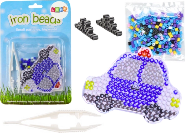 Sada ponúka farebné korálky, ktoré umožňujú vytváranie vzoru pomocou priložených pinziet. Deti týmto spôsobom cvičia koordináciu rúk a očí a presnosť pohybu. Po dokončení vzoru korálky prikryjete špeciálnym papierom a zažehlíte. Výsledkom je trvanlivý, farebný obrázok autíčka, ktorý môže slúžiť ako dekorácia alebo originálny darček.