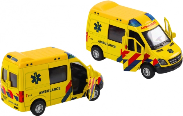 Táto žltá ambulancia je perfektným zástupcom záchranných vozidiel, ideálna pre role-playing scenáre. Model má realistické detaily a ponúka rad zábavných funkcií: