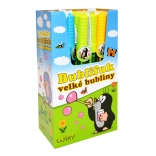 Zábavný bublifuk s motívom Krtko v praktickej tyčinke s objemom 120 ml vytvára množstvo pestrofarebných bubliniek. Ideálny pre deti, vonkajšie hry a narodeninové oslavy. K dispozícii v troch farebných variantoch – žltá, oranžová a zelená.