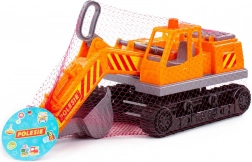 Pásový bager zo série Monolit je určený na vnútorné aj vonkajšie hry. Hračka z kategórie špeciálnych stavebných strojov je vybavená pohyblivým ramenom, ktorého lyžica sa ovláda sivou rukoväťou. Nadstavba s kabínou je otočná o 360 stupňov. Pásy sú vyrobené z vysokokvalitnej a pevnej gumy, čo zabezpečuje jazdu na rôznych povrchoch. Mriežku nad motorom je možné otvoriť.