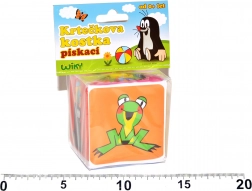 Zábavná pískacia kocka pre najmenších z kolekcie s postavičkami KRTKA a jeho kamarátov poteší pestrými farbami a mäkkým, bezpečným materiálom. Každá strana je farebne odlišná a zobrazuje obľúbených hrdinov, kocka pri stlačení vydáva pískací zvuk, ktorý podporuje zmyslové vnímanie a pozornosť bábätka.