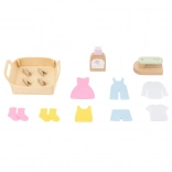 Súčasťou balenia je žehlička, prací prostriedok, košík a plstená bielizeň – všetko pre kompletný „prací deň“ v detskej izbe.