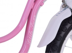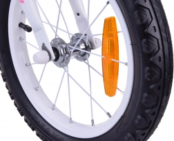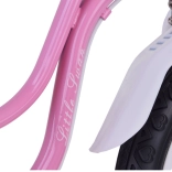 Ergonomické riadidlá s mäkkými gripmi, zvončekom a strapcami potešia malé jazdkyne, zatiaľ čo kombinácia prednej čeľusťovej a zadnej bubnovej brzdy prináša plynulé a bezpečné brzdenie. Bočné kolieska dodajú stabilitu pri učení a praktický košík pojme drobnosti. Jazdný komfort dopĺňa mäkké, výškovo nastaviteľné sedlo s držadlom na vedenie.