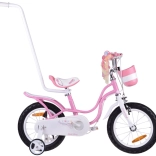 Štýlový a bezpečný detský bicykel 14" ROYALBABY Little Swan pre dievčatá, ktoré začínajú jazdiť. Ponúka stabilitu vďaka bočným kolieskam, ľahké ovládanie s ergonomickou časťou riadidiel, kombináciu prednej čeľusťovej a zadnej bubnovej brzdy pre isté zastavenie a predný košík na drobnosti. Súčasťou je aj vodiaca tyč pre rodičov.