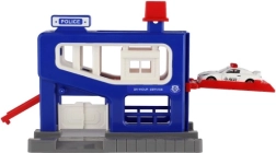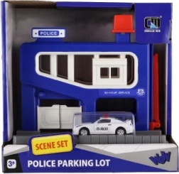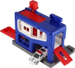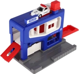 Sada obsahuje garáž s detailnými prvkami a jedno autíčko. Deti sa môžu hrať na policajtov a zlodejov, pretekať a nechávať vchádzať autíčko do garáže. Garáž je navrhnutá pre deti od 3 rokov a jej kompaktné rozmery umožňujú jednoduché umiestnenie v izbe i na stole.
