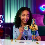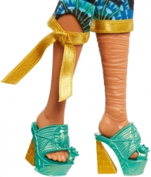 Bábika Cleo De Nile sa chystá na najhorúcejšie hudobné podujatie roka – Monster Fest! Vyniká topom so zlatými rukávmi, nohavicami v farbách drahokamov a korunou s motívom lotosu, ktorá zvýrazňuje jej dlhé modré vlasy. Vďaka kĺbom ľahko nastavíte cool pózy na fotky aj hranie príbehov.