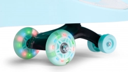 Gumové kolesá zabezpečujú plynulú a tichú jazdu a zároveň nepoškriabu podlahu. Predné kolesá sa pri jazde rozsvietia vďaka LED diódam, takže deti sú lepšie viditeľné aj za šera a jazda je ešte zábavnejšia. Ergonomicky tvarované sedlo a protišmykové plôšky pre nohy zvyšujú pohodlie a bezpečnosť.