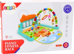 Farebná a mäkká podložka poskytuje pohodlie a bezpečnosť pri hre. Dieťa môže nohami kopať do piánka umiestneného v základni podložky, ktoré vydáva veselé zvuky, alebo hrať na piánko rúčkami a rozvíjať tak svoje svaly a koordináciu rúk a očí. Nad podložkou je oblúk s hračkami, ktoré možno uchopiť a triasť s nimi, čo podporuje zrak a hmat dieťaťa.