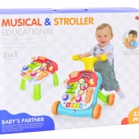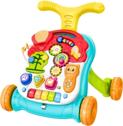 - Hudobný panel: Klavír umiestnený na spodnej strane stolíka učie základy hudby, zatiaľ čo veselé melódie udržujú dieťa motivované pri učení chôdze.