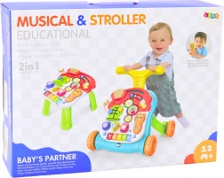 Interaktívny vzdelávací stolík a chodítko 2v1 poskytuje zábavu a vzdelávanie, podporuje rozvoj dieťaťa na mnohých úrovniach, od kognitívnych a motorických zručností po hudobné a senzorické vnímanie.