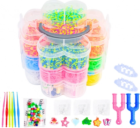 Kreatívna sada gumičiek na výrobu náramkov a ďalších unikátnych predmetov umožňuje každému dieťaťu stať sa dizajnérom a módnym vizionárom. Rôznofarebné gumičky ponúkajú možnosť tvoriť jednoduché jednofarebné náramky aj zložité viacfarebné projekty. Korálky pridávajú každému projektu jedinečný šarm, umožňujúci vytváranie prepracovaných a elegantných vzorov.