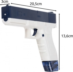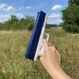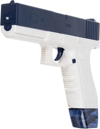 Zabudnite na ručné pumpovanie – stačí stlačiť a držať spúšť a pištoľ vypáli rýchle, automatické jednotlivé dávky vody. Nízka hmotnosť a vyvážené ťažisko uľahčia mierenie, zatiaľ čo tesnené nádržky bránia pretekaniu. Výmenu zásobníkov zrýchli bočné modré tlačidlo so zámkom.