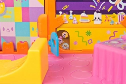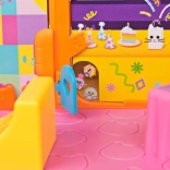 Rozbehnite oslavu vo veľkom štýle! Párty izba Mačacieho domu GABBY ponúka rampu na korčuľovanie, scénu na vystúpenia aj „klzisko“. Dve detailne spracované figúrky s funkčnými kolieskami oživia každé predstavenie a farebné príslušenstvo dodá tú pravú párty atmosféru. Interaktívne fidget prvky na stene podporujú zmyslové hranie a udržia pozornosť detí.