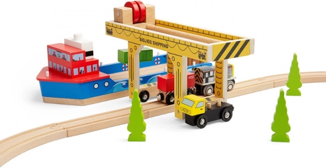 Súčasťou je kontajner, nákladné vozidlo a realistické detaily. Skvelo sa kombinuje s vlakovými traťami a ďalšími doplnkami BIGJIGS.