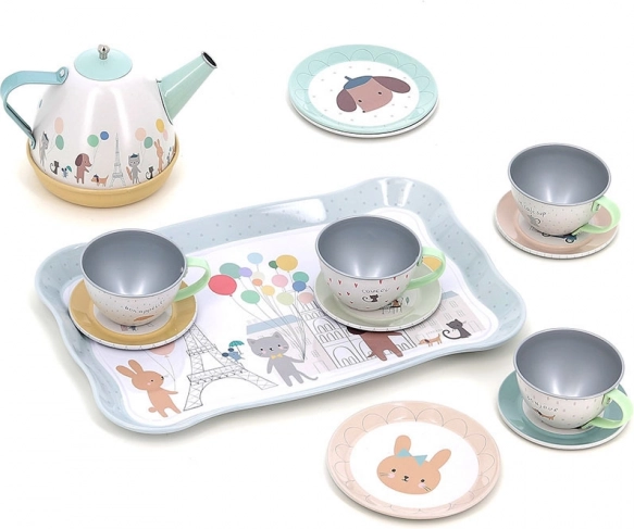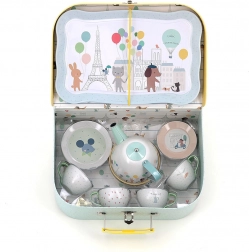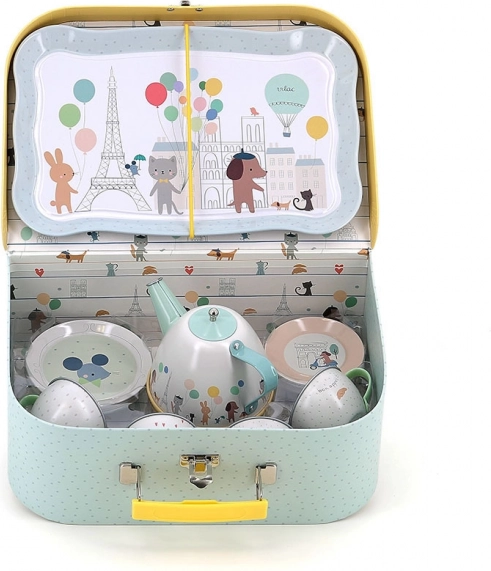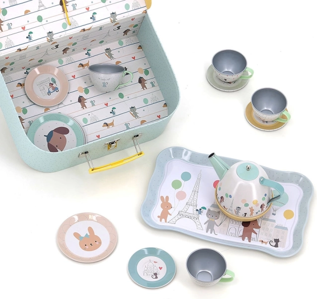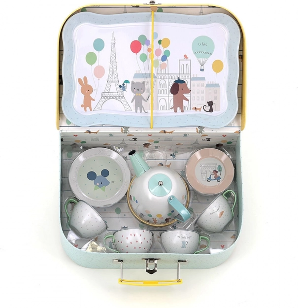 Táto roztomilá sada obsahuje 14 dielov ilustrovaných Sarah Betz, ktorí prinášajú dojem Paríža vďaka jemným farbám a motívom. Sada zahŕňa tácku, kanvičku a štyri šálky s podšálkami, ideálne pre hravé čajové posedenia. Vďaka praktickému kufríku môžete set jednoducho prenášať a používať aj na cestách.