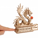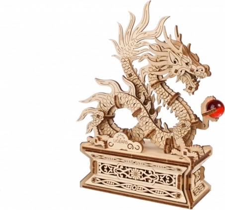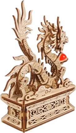 Drak je plne pohyblivý a možno ho sňať z podstavca. Ovládací prvok aktivuje jemný pohyb, ktorý zvýrazní detaily rezby a dodá modelu živosť.