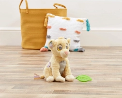 Zoznámte sa s malým levíkom Simbom – mäkučkým kamarátom na každý deň. Plyšová hračka kombinuje upokojujúcu hebkosť s chytrými detailmi pre zmyslové objavovanie: textúrované bruško, jemne lemované uši a listové hryzátko pre úľavu pri prerezávaní zúbkov.