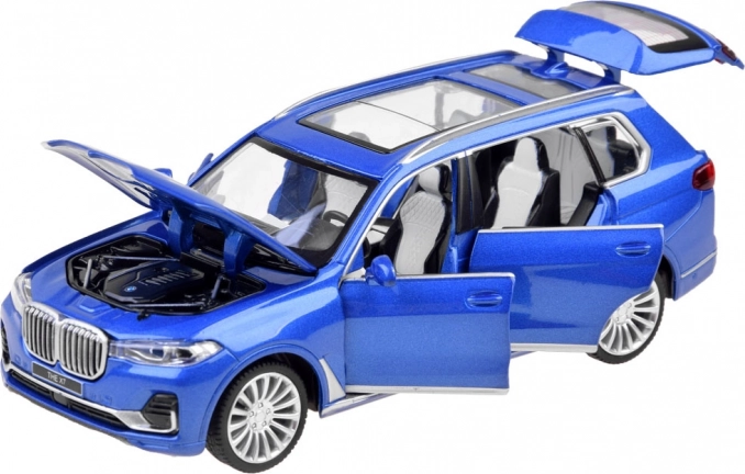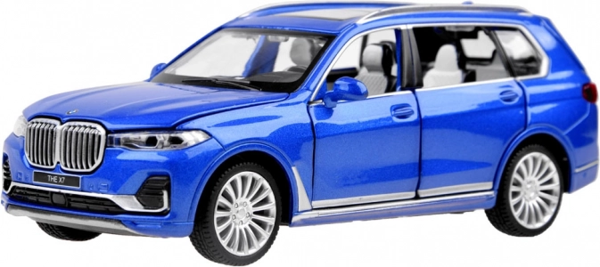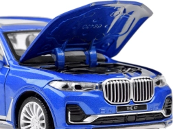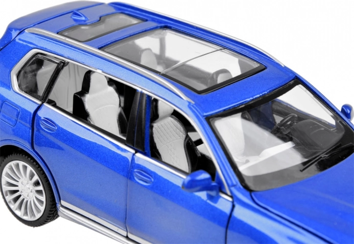 Realistický kovový model SUV BMW X7 v mierke 1:32 poteší každého malého vodiča. Ponúka otváracie dvere, kapotu a kufor, svetelné a zvukové efekty, gumové kolesá a spätný pohon (pull-back) pre svižnú jazdu. Kvalitná kovová karoséria a precízne spracovanie zaručujú odolnosť aj skvelý vzhľad.