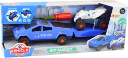 Zábavná stavebnicová sada pre malých policajtov: modré policajné auto s prívesom a bielym quadom na rozoberanie a skladanie. Súčasťou je bezpečný skrutkovač pre malé ruky. Podporuje kreativitu, jemnú motoriku a učenie princípov mechaniky. Kvalitné materiály, odolné spracovanie a atraktívny policajný dizajn.