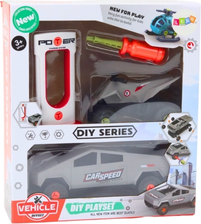 Kreatívna sada pre malých technikov: sivé moderné auto, štvorkolka a nabíjacia stanica na montáž. Deti si precvičia jemnú motoriku a pochopia základy mechaniky vďaka skrutkovaniu a skladaniu. Súčasťou je skrutkovač. Hračka je vyrobená z kvalitných materiálov, má certifikáciu CE a spĺňa normu EN71, vhodná pre deti od 3 rokov.