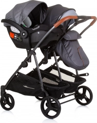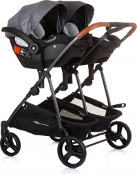 Kočík pre dvojčatá Chipolino Duo Smart je vybavený ľahkým hliníkovým rámom a rýchloupínacími kolesami, čo uľahčuje manipuláciu a prepravu. Vďaka odpruženiu zadných kolies s brzdami poskytuje kočík hladkú a bezpečnú jazdu. Tento kočík umožňuje jednoduchú transformáciu korby na polohovací športový kočík pre väčšie deti.