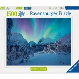 Dizajn puzzle zobrazuje nádherný pohľad na polárnu žiaru nad zasneženou krajinou, čo prináša prírodné krásy do vašich rúk. Ideálny pre zábavu aj dekoráciu po zložení.