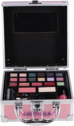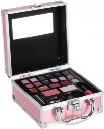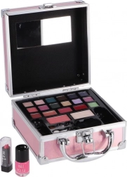 Štýlový ružový mini kufrík na líčenie na každodenné aj cestovné použitie. Obsahuje všetko, čo potrebujete na rýchly make-up: 14 očných tieňov, trblietavé farby na pery, lícenku a púder, rúž aj lak na nechty. Praktické zrkadielko, štetec na lícenku, hubkový aplikátor a štetec na pery zabezpečia pohodlnú aplikáciu doma aj na cestách.