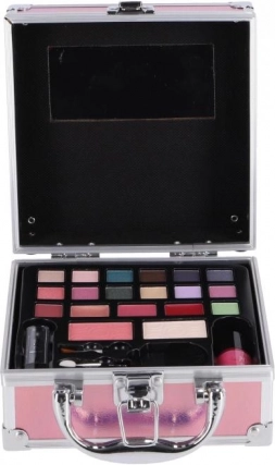 - 14× očné tiene, 3× trblietavé farby na pery, 1× lícenka, 1× púder, 1× rúž, 1× lak na nechty, 1× štetec na lícenku, 1× hubkový aplikátor, 1× štetec na pery, 1× zrkadielko