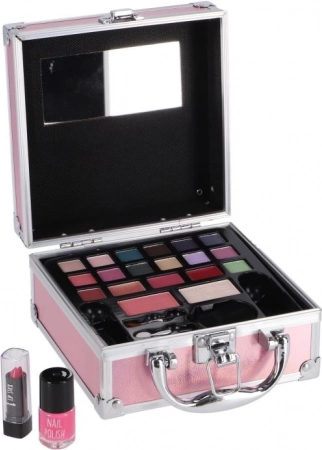 V sade nájdete pestrú paletu 14 očných tieňov na denný aj večerný look, trblietavé farby na pery pre jemný lesk, dokonalé zjemnenie pleti pomocou lícenky a púdru a tiež základné doplnky vrátane rúžu a laku na nechty. Integrované zrkadielko a praktické aplikátory umožnia expresné úpravy kdekoľvek.