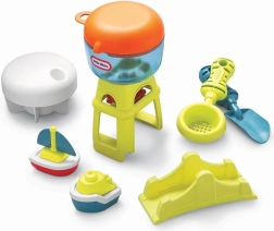 Zábavný pieskovo-vodný stolík LITTLE TIKES s dáždnikom a krytom prináša deťom od 18 mesiacov hodiny tvorivej hry. Ponúka priestrannú plochu na hranie s pieskom aj vodou, podporuje zmyslové vnímanie, fantáziu a spoločnú hru. Integrovaný slnečník chráni pred UV žiarením, ľahko umývateľný plast s jednoduchou údržbou a robustné spracovanie zabezpečujú dlhú životnosť doma aj na záhrade.