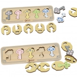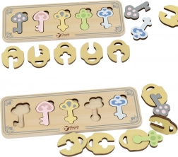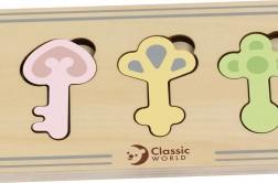 Deti priraďujú každý kľúč k zodpovedajúcemu výrezu, čím posilňujú logické myslenie a vnímanie tvarov aj farieb.